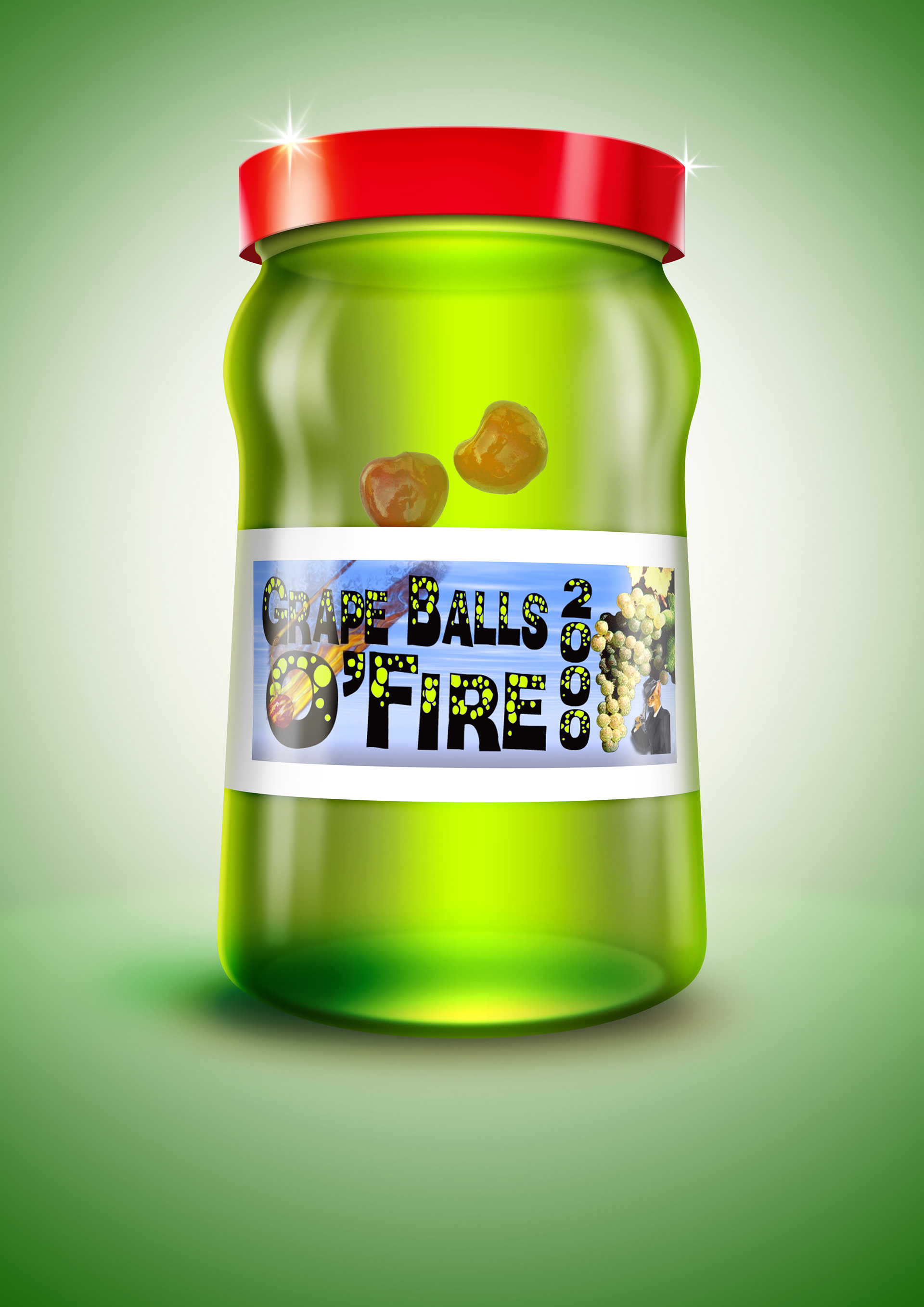 Cinnamon and white grape jelly. With a pair of free-floating cherries. I chose a typeface with little green spheres to highlight the Sweet white grape and an image of a flaming cherry, meteor to highlight the fiery cinnamon taste.